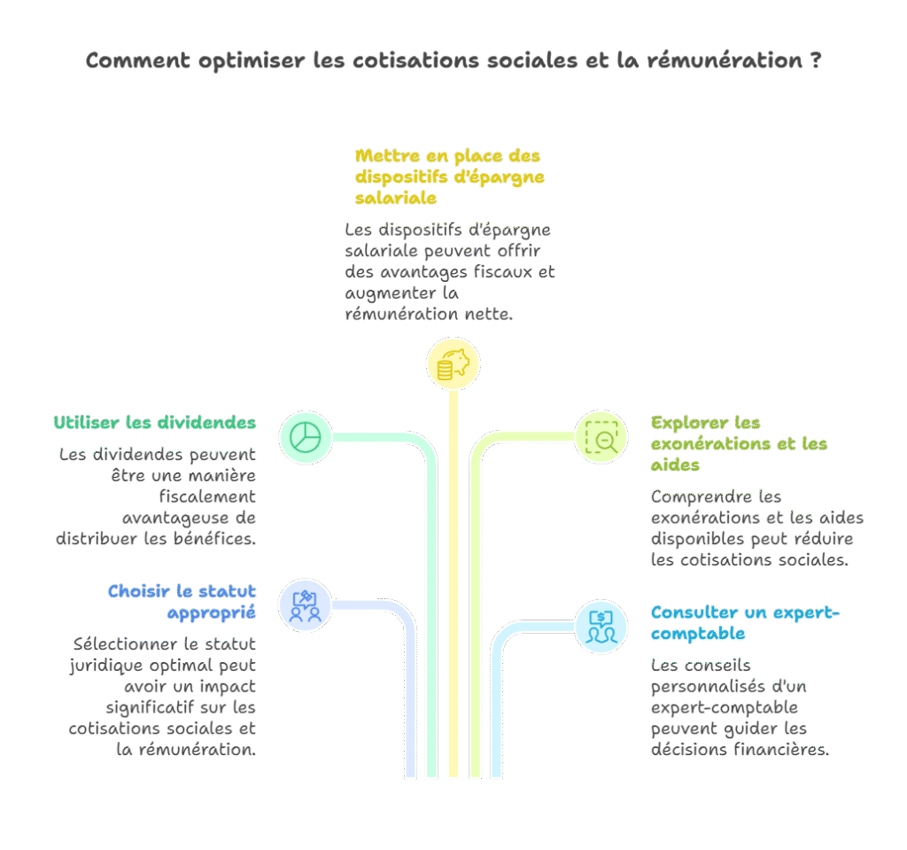 Une autre piste souvent sous-estimée consiste à passer en charges certains frais inhérents à votre activité : matériel, déplacements, formations certifiantes, abonnements professionnels… Ces dépenses diminuent votre bénéfice imposable, et par ricochet réduisent la base de calcul de vos cotisations sociales. Vous alliez ainsi gestion de l’entreprise et optimisation rémunération dirigeant SASU. Pensez aussi aux aides sectorielles ou régionales, qui peuvent couvrir une partie de ces coûts et alléger encore davantage votre facture sociale.